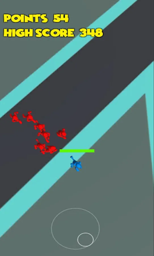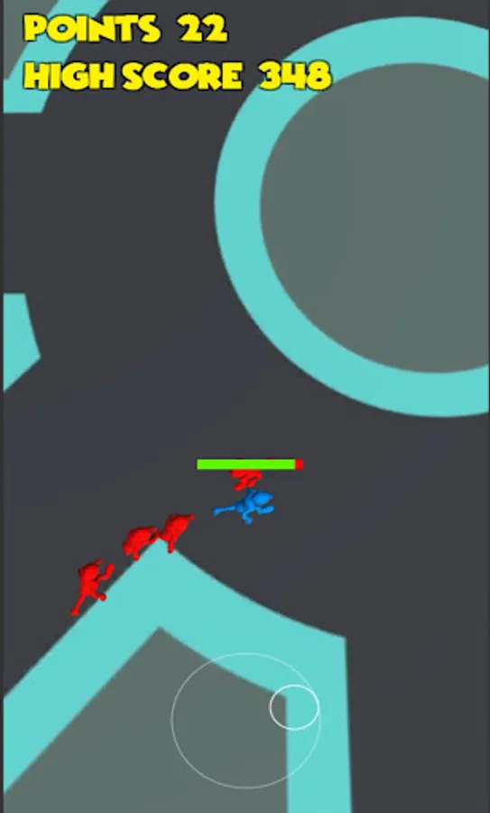 Use the virtual joystick to evade the mob trick them to head collision to get points.Try to get the health pack to regain life.Survive as much possible to beat your own highScore!
