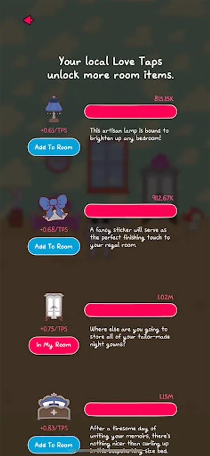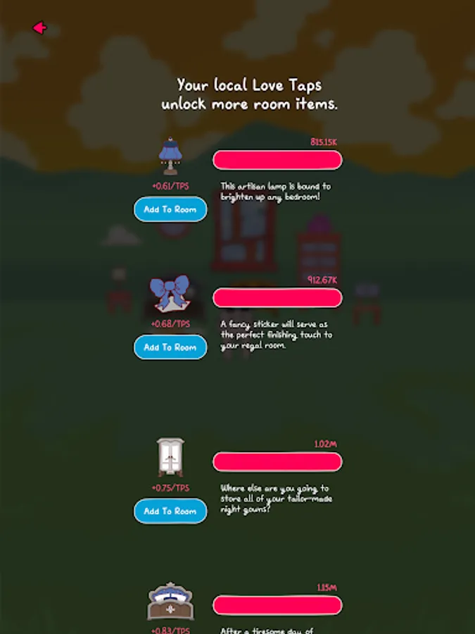 Help Bean build a room and a team, and share love all over the world, just by tapping your screen!