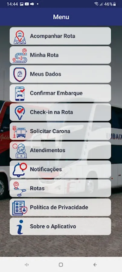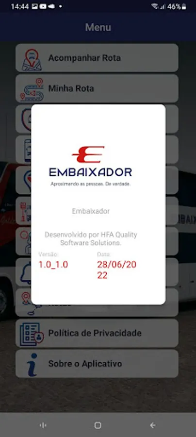 Application used by passengers on Ambassador buses to track the vehicle's movement. For creating calls with the central, monitoring routes, performing check-in and boarding confirmations.