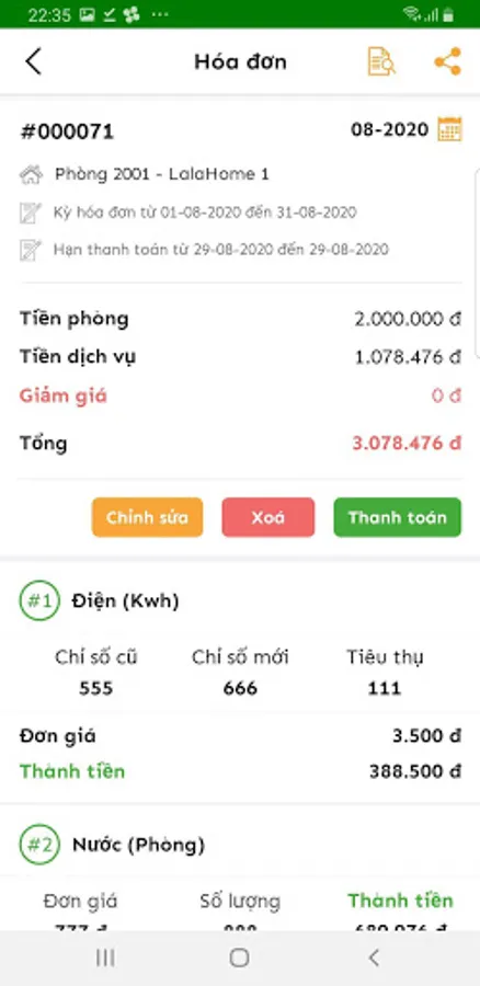 • Manage services such as electricity and water, cleaning services, security... of each room, no need to record, the system will manage for you.