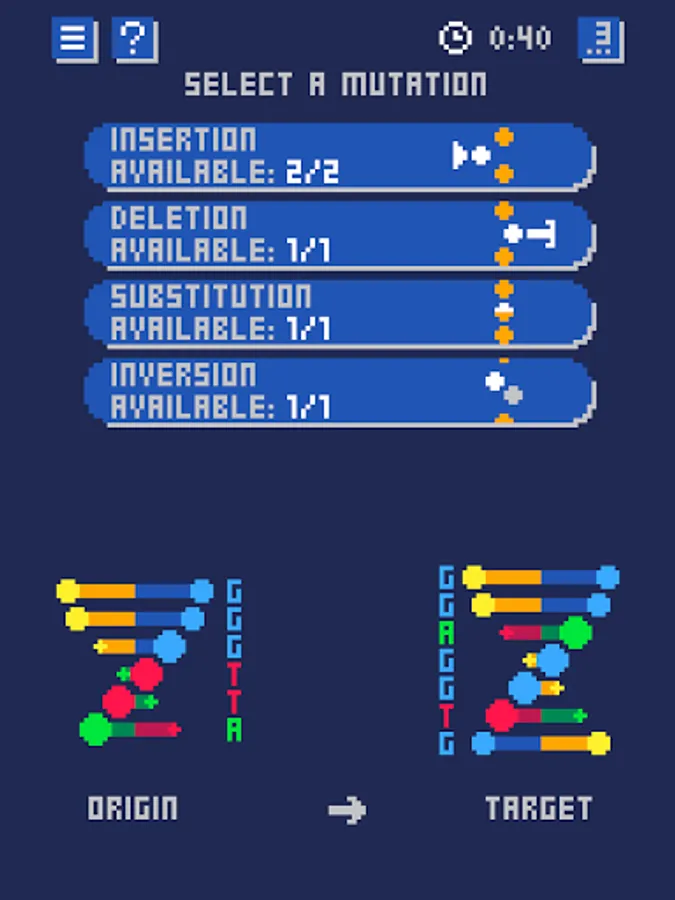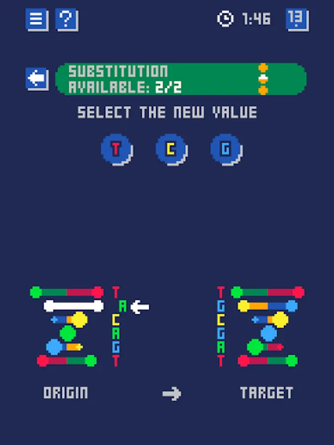A scientific retro puzzle game about DNA!🧬 Find the mutations to apply to obtain the required DNA.