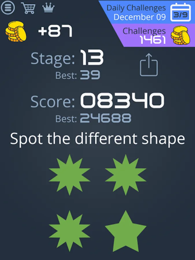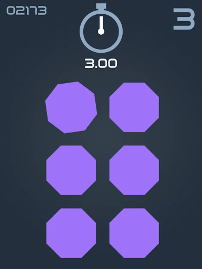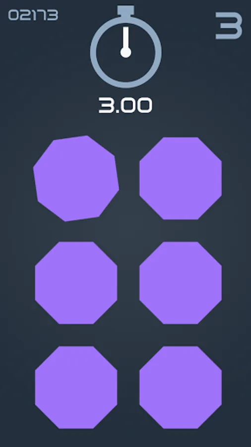 Multiple shapes are displayed on the screen, tap on the only different one. But you must do it in less than 3 seconds! How long will you stay?