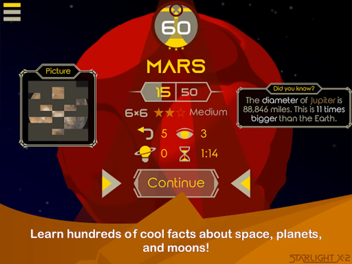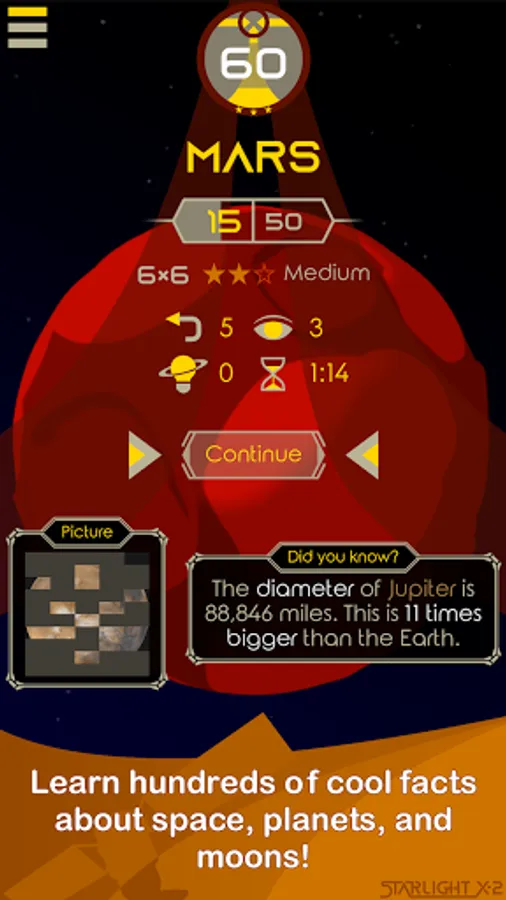 If you are a big fan of how our universe works, Starlight X-2: Cosmic Puzzle is a perfect cosmology planet star game for you. Solve unique puzzles every day and unlock beautiful pictures of space at the end of each level.