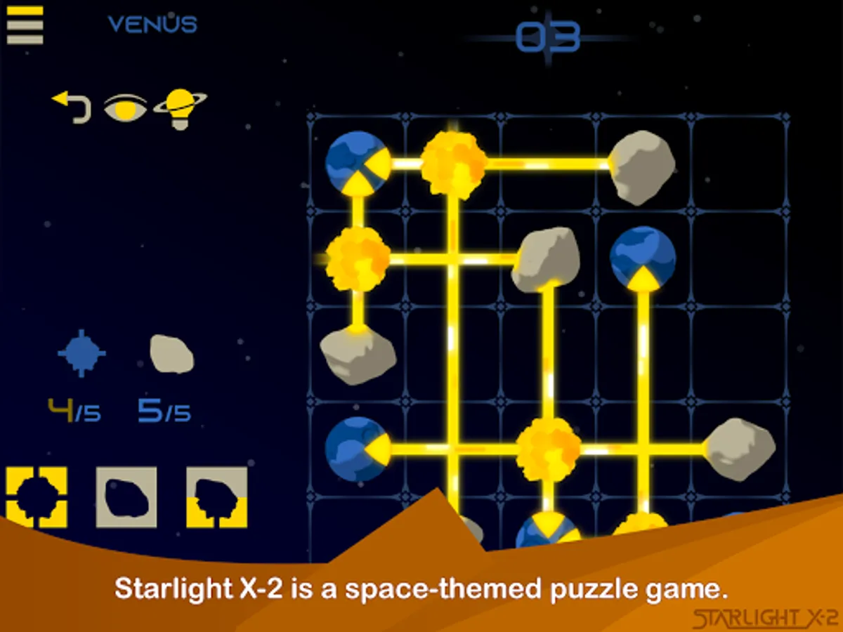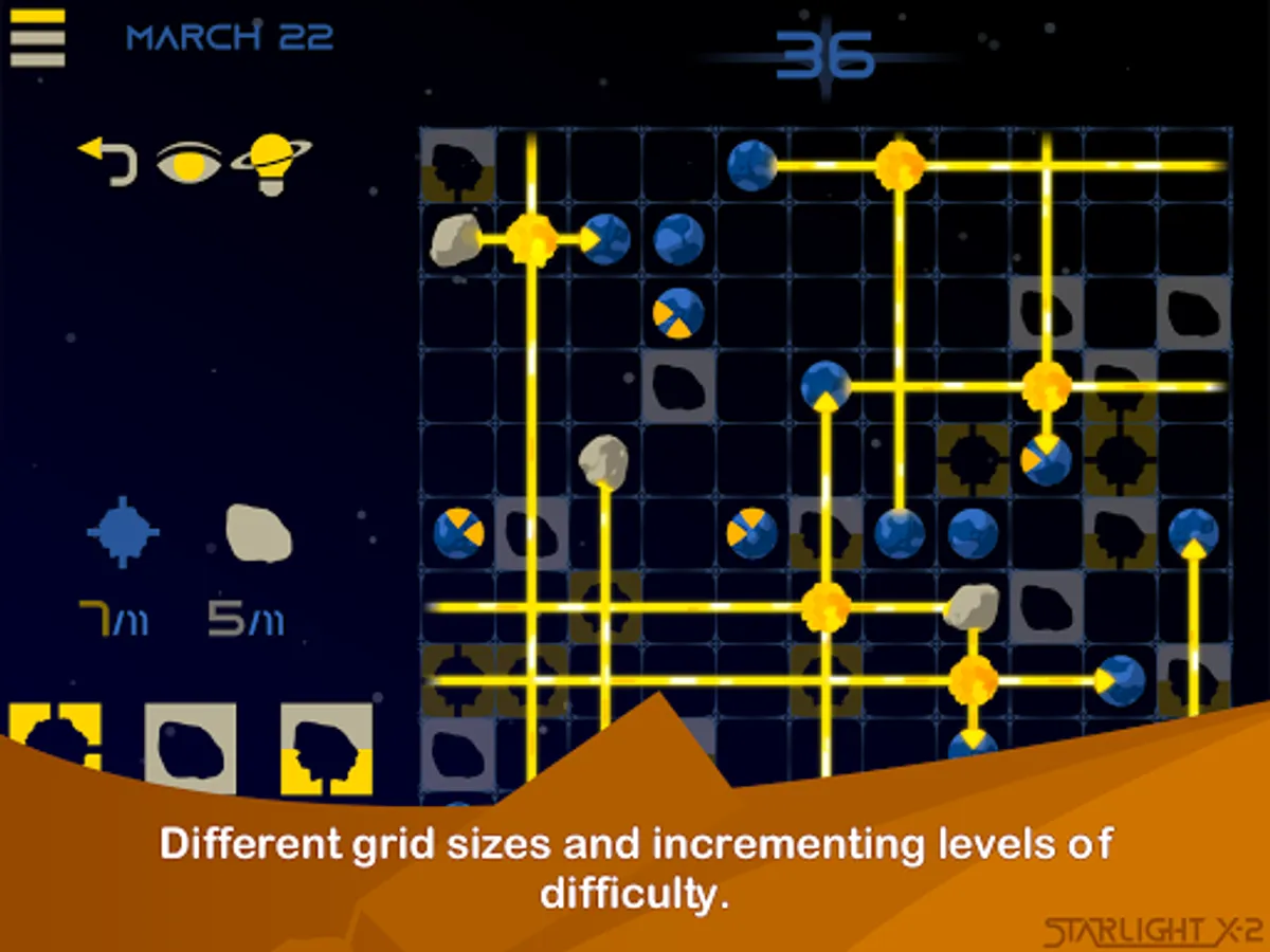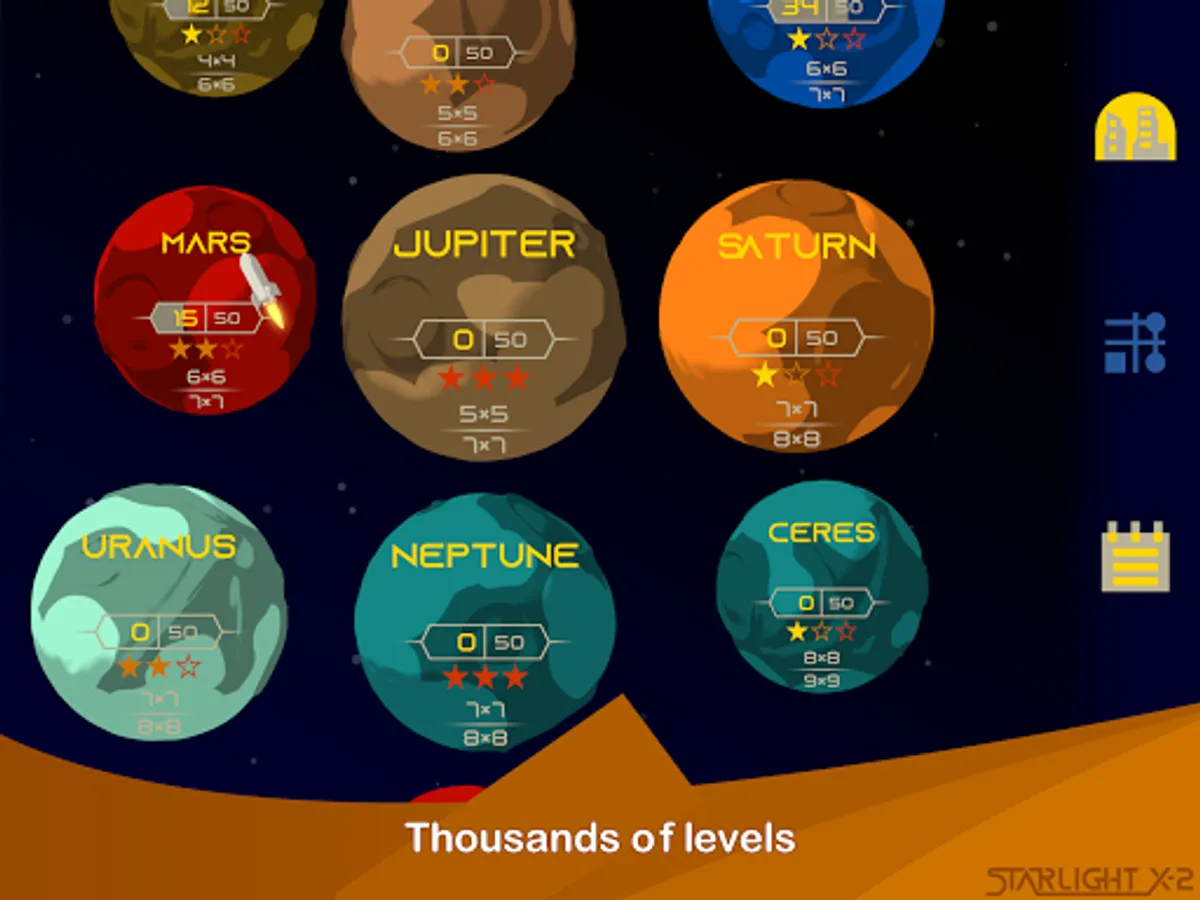 A wide variety of starlit light puzzle levels free of ads.