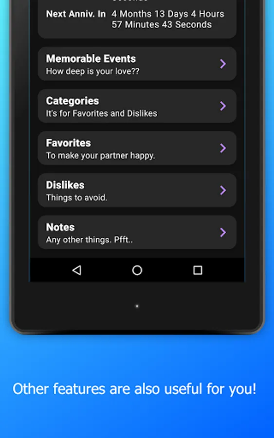 • Dislikes - You can make your partner feels cared by giving attention on what they don't like!