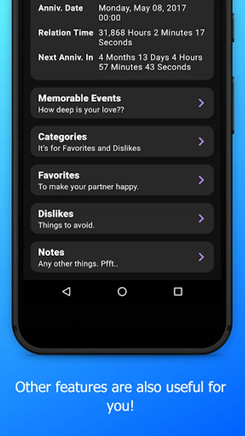 • Notes - You can write other things you need to note about your partner. Their exes name for example.