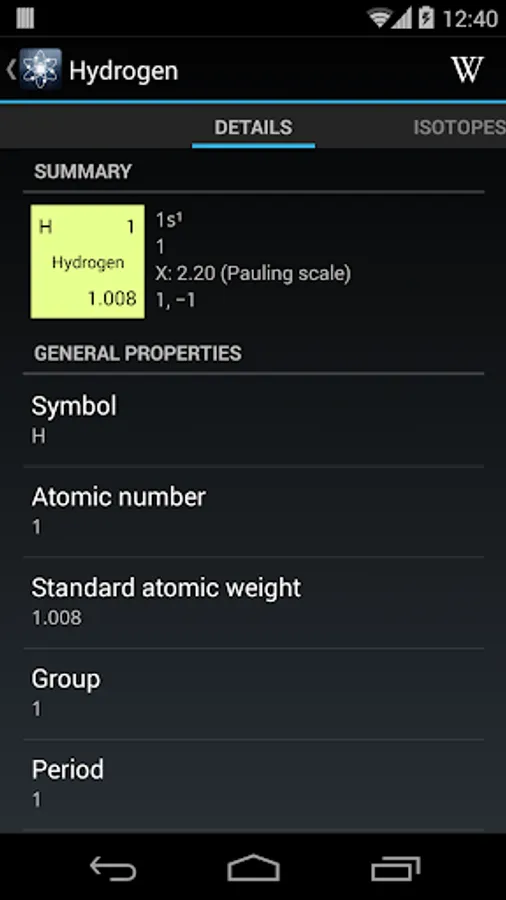 An ad-free, open source, holo styled interactive periodic table with list of element properties and list of isotopes based on Wikipedia's database.