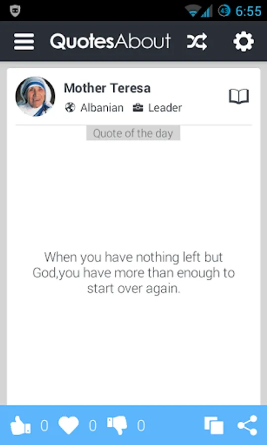 If you have any suggestion or feedback, please send us your feedback from our application by selecting Home > Settings > Feedback or write to us at support@quotesabout.us