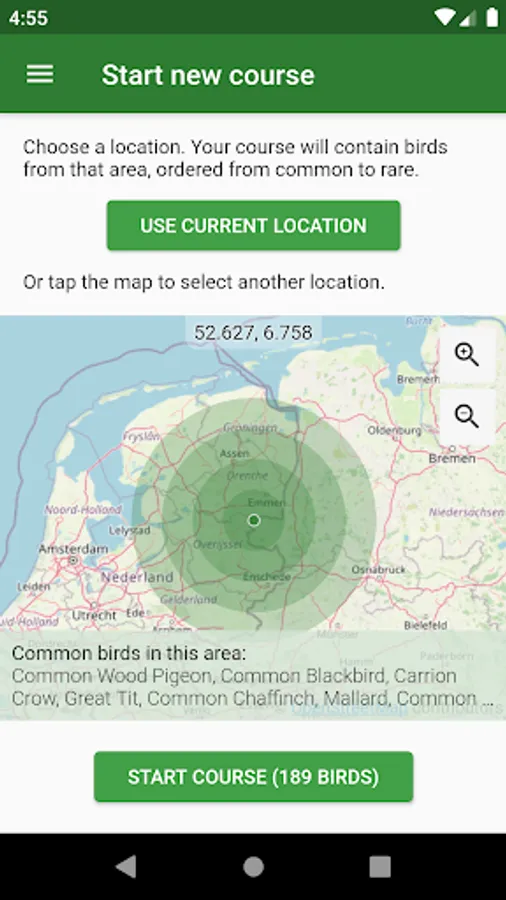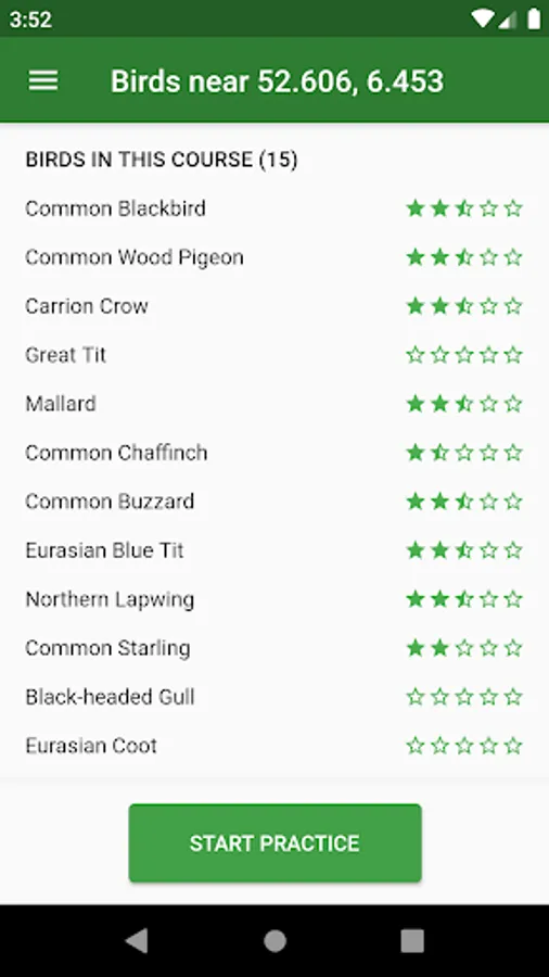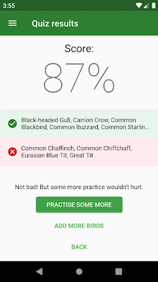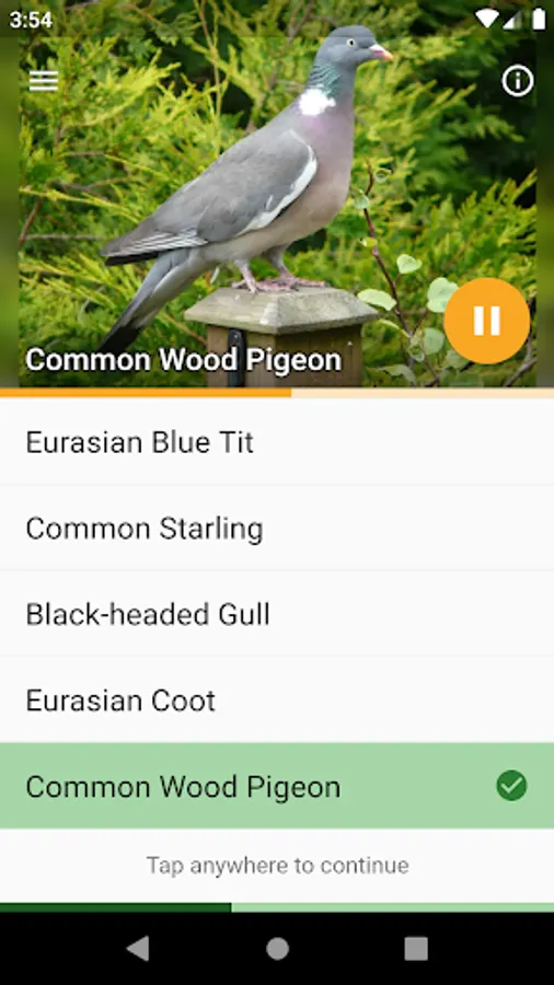 - Listen to a recording and identify the bird, with instant feedback on your answers