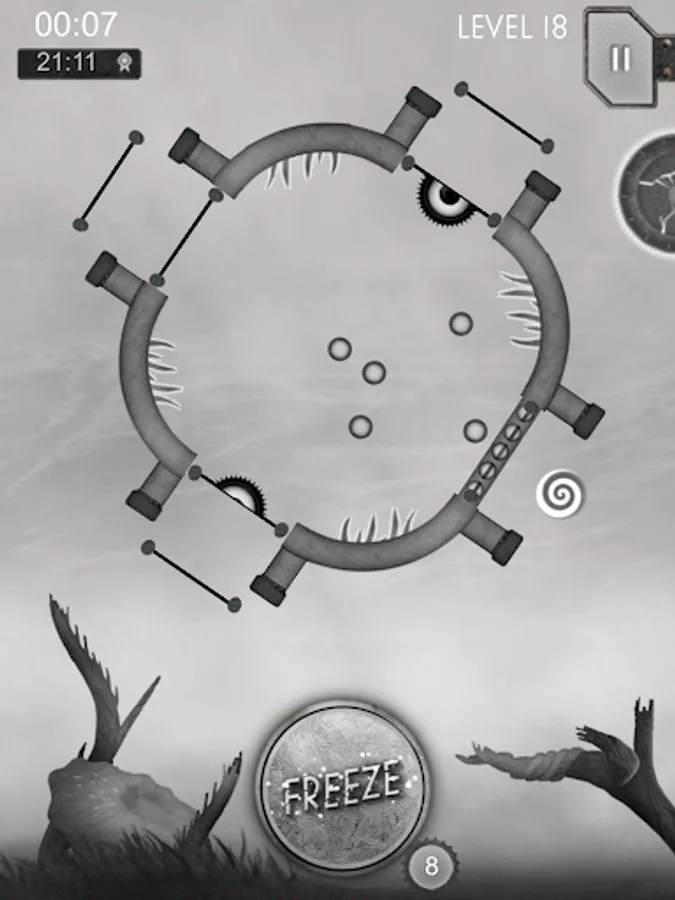 Solving the rotating, physics-based puzzles is easy - just use your finger to continuously turn the cell in both directions around our hero. Of course you also have to make clever use of the Freeze! button, which can overcome gravity. Sound simple? It is – at first...
