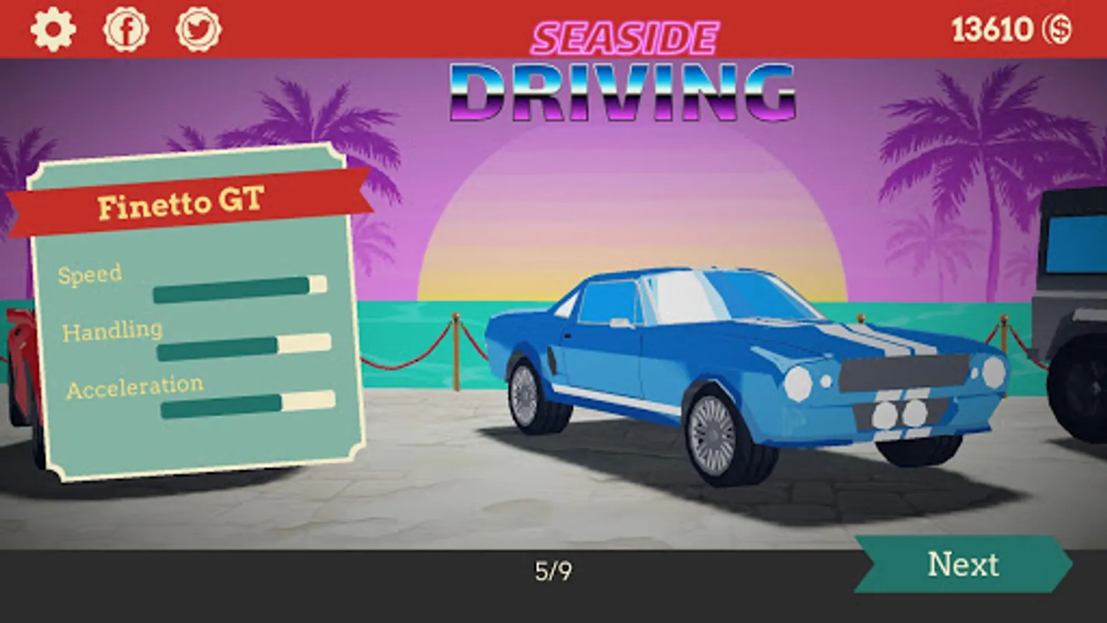 Pick your car and drive with the ocean by your side in the most 80s inspired driving game.