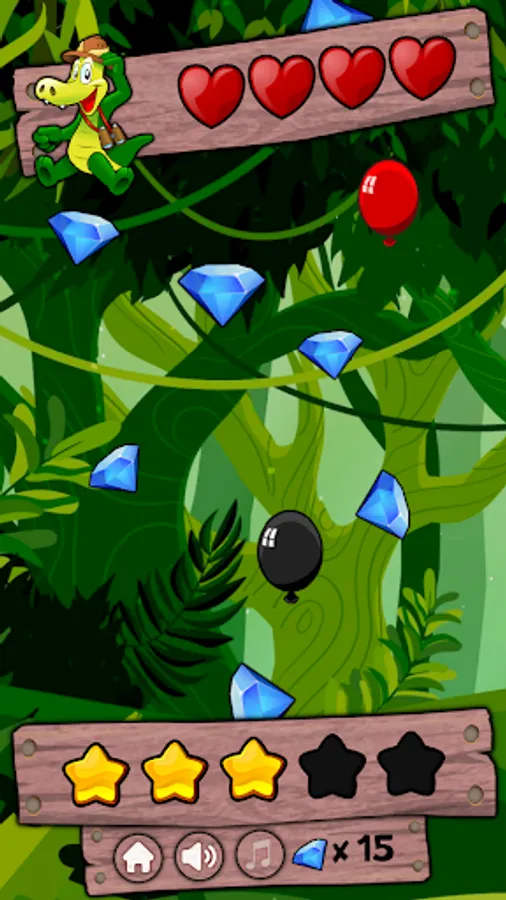 Catch as many diamonds as possible and help this crocodile reach his dream. Watch out for black balloons that will make you lose hearts. If necessary, the red balloons will save your life.