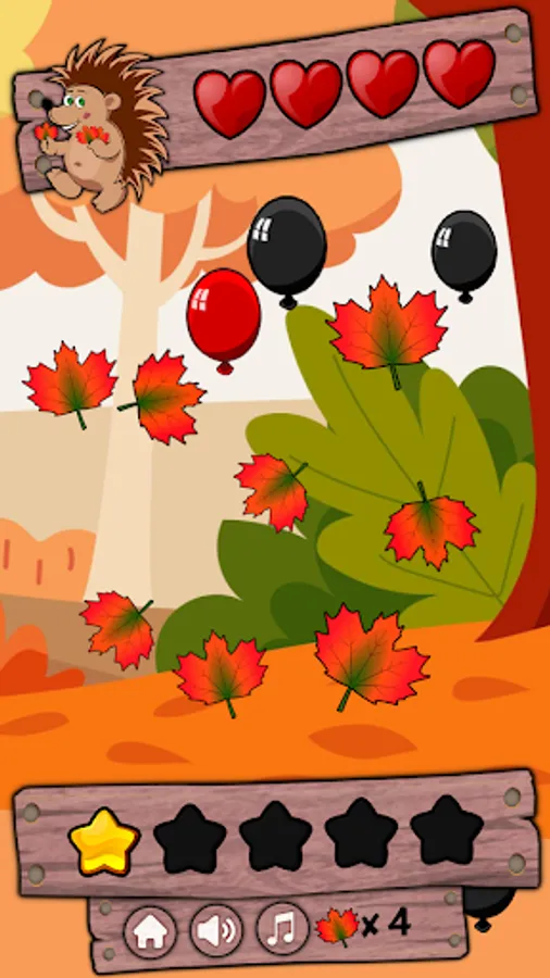 Catch as many leaves as possible and help this hedgehog make a cozy and warm nest. Watch out for black balloons that will make you lose hearts. If necessary, the red balloons will save your life.