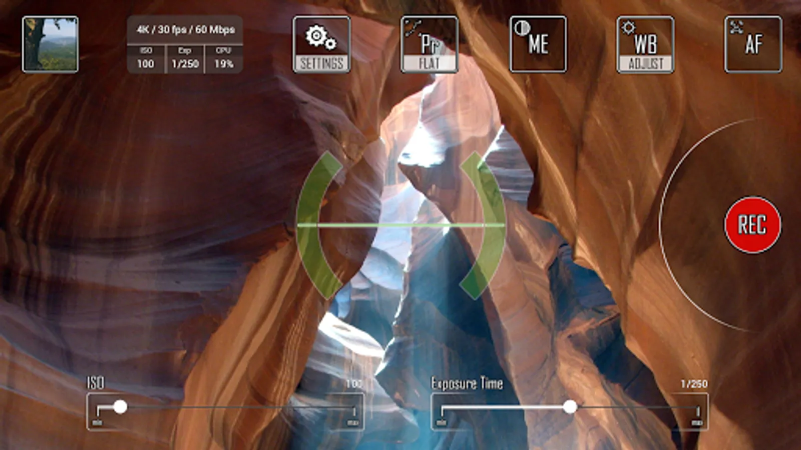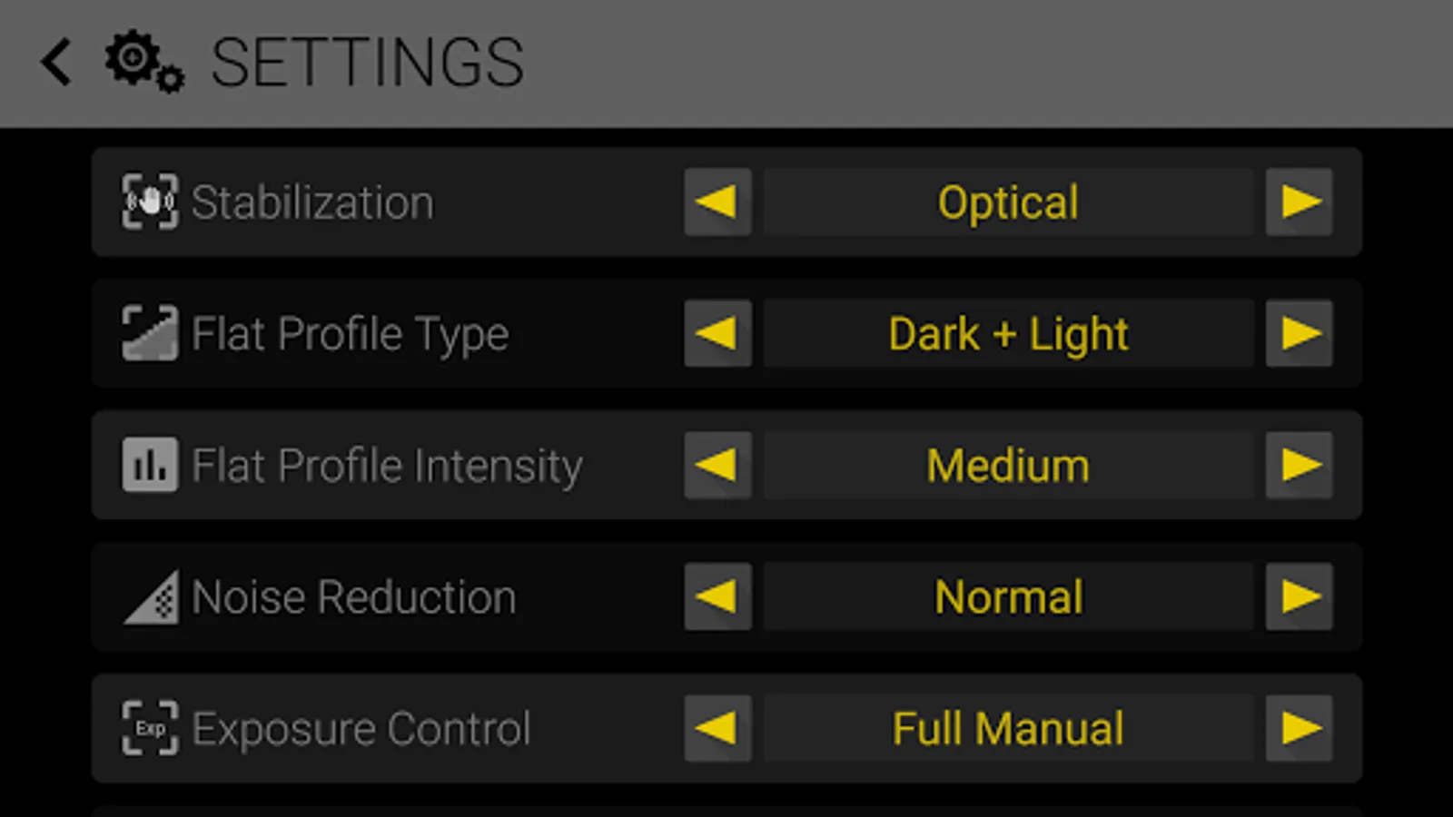 Cinema 4K is the first and only app which introduces Flat Profile (like Cinelike D, S-Log2, V-Log L or ProTune) to get more dynamic range of your videos for post production. In Flat Profile Mode the app disables the default sharpening effect to keep as many details as possible. The raw video might seem flat and dull at first sight, but this is the ideal footage for post processing and color grading.
