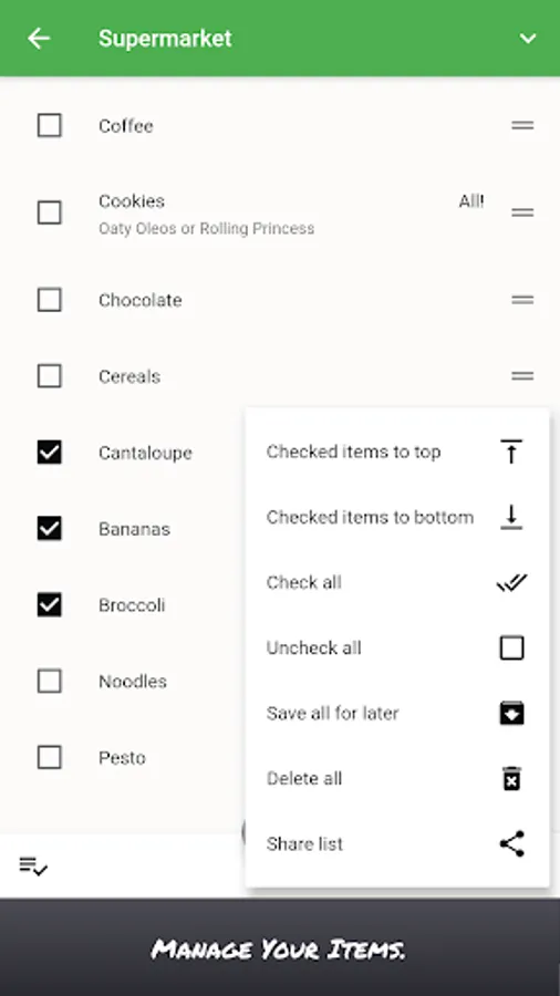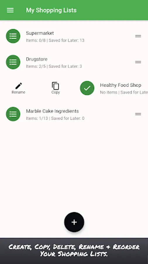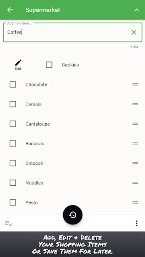 Manage your grocery lists with this simple, easy-to-use, minimalistic and pragmatic app.
