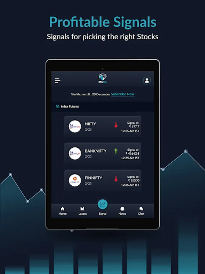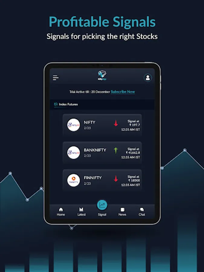 NiftyAlgo is Robo Advisor for trading the NSE Index and Stocks Futures on National Stock Exchange (NSE) India. NiftyAlgo is AI powered Stocks and Index trading signal provider for NSE Stocks Futures and Index Futures. You can trade Nifty, BankNifty and 40+ Stock Futures with AI expertise.