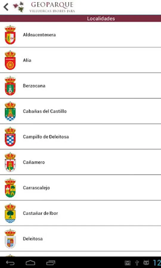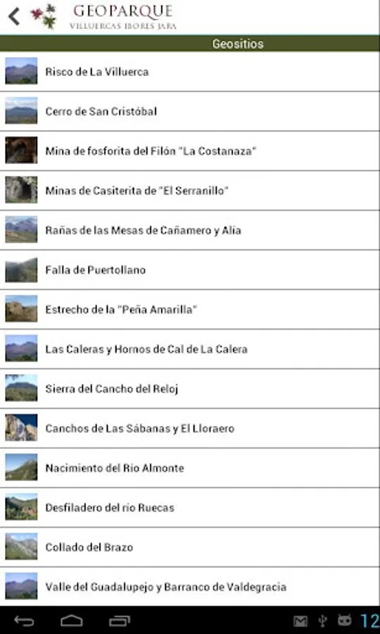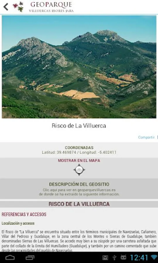 Application GeoVIJ Geopark Villuercas - Ibores - Jara for Android devices location map Geopark, locality data and geological sites, using GPS, etc.