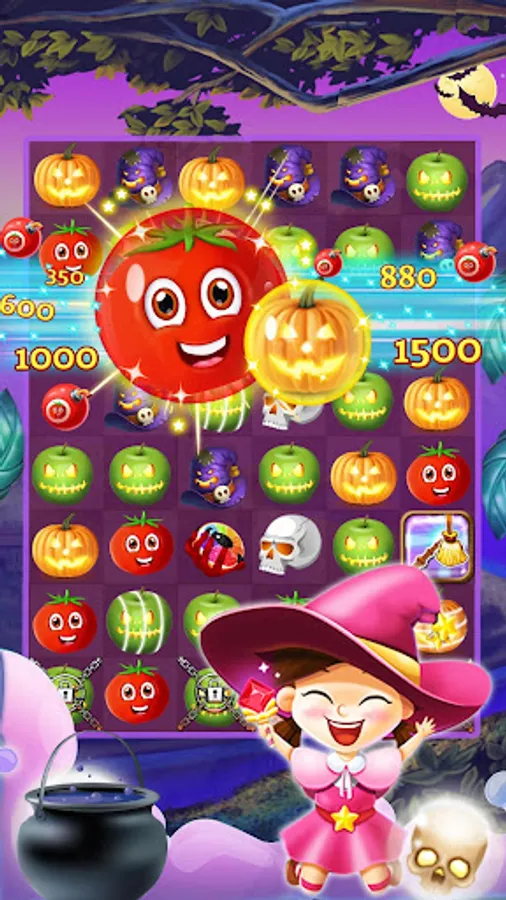 ✔ Crush 5 Fruits Halloween in a line to create color blossom
