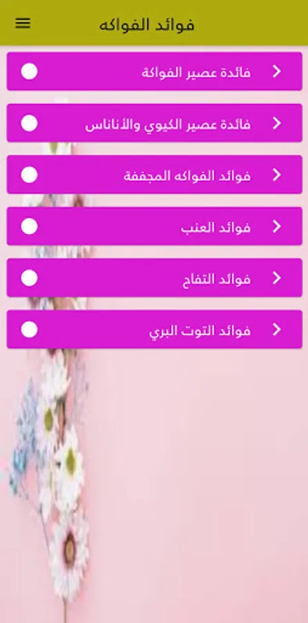فوائد الفواكه التطبيق يوجد في الكثير من التفاصيل الفواكه بأكملها وكل فترة نضيف نوعية من الفواكه وفوائدها