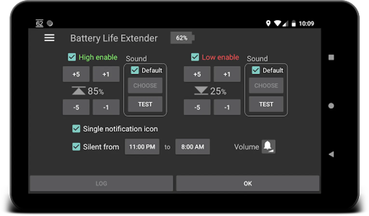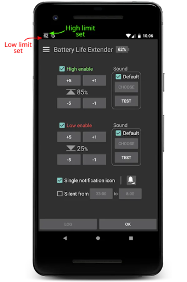 Note: Because of this, this app does not automatically extend the life of your battery. It merely assists you so that you can interrupt the charging process at an optimal level.
