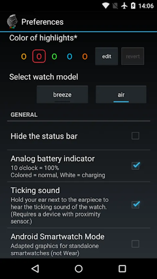 The design concept is intended for watches with a mechanical movement, self or automatic wind. Now you can have Breeze and Air, two watch designs in one app, on your Android device.