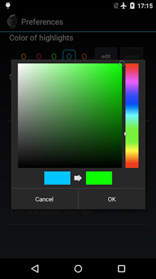 • Live Wallpaper (adjustable size and position of the watch). The standard procedure to enable it: long-press on a free area of your home screen and select "Live Wallpapers".