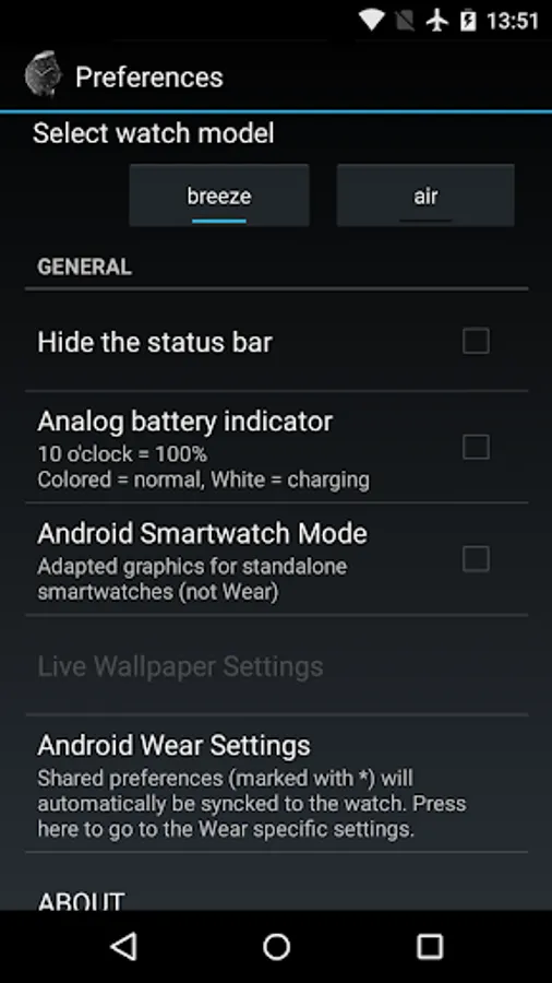 The design concept is intended for watches with a mechanical movement, self or automatic wind. Now you can have Breeze and Air, two watch designs in one app, on your Android device.