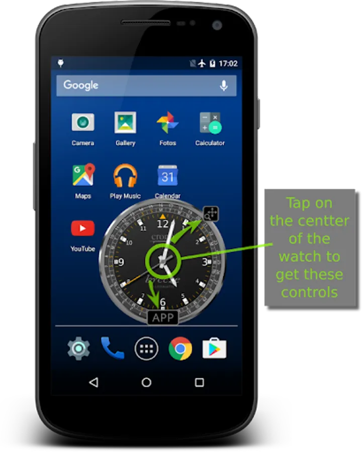• Live Wallpaper (adjustable size and position of the watch). The standard procedure to enable it: long-press on a free area of your home screen and select "Live Wallpapers".