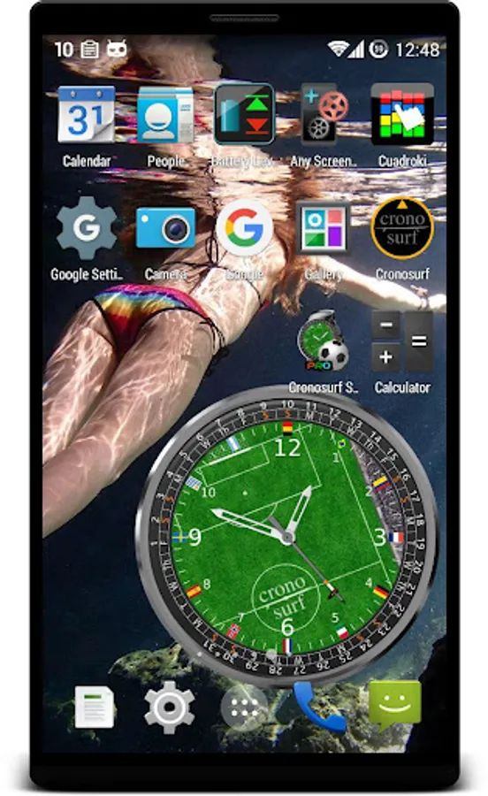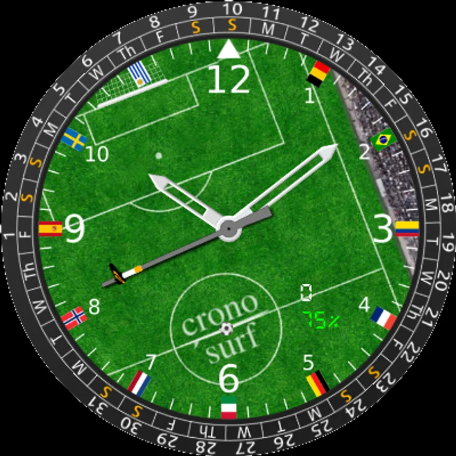Cronosurf Soccer is made for soccer fans and everyone that likes unusual watches! Based on Cronosurf Breeze, it nicely shows a soccer play field and even lets you kick the ball with the second-hand! There is even a goal and a goal keeper - and yes, you can score goals!