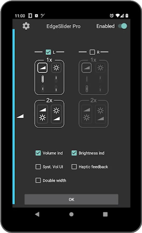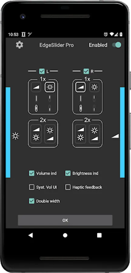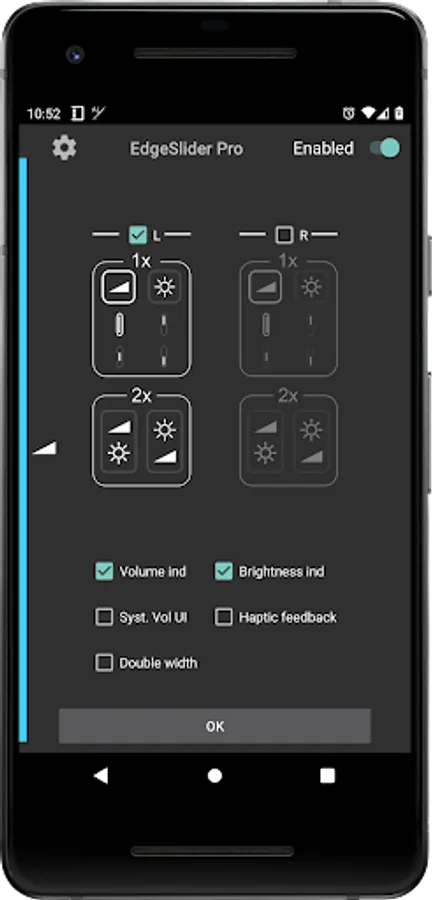 EdgeSlider Pro is a powerful yet simple tool that provides an invisible, non-intrusive thin slider along the left and/or right edge of the screen to directly control the volume and/or screen brightness at all times. It is highly responsive and provides precise and quick adjustments by sliding your finger along the edge. No matter which app you are using, adjusting volume and brightness has never been so quick and effortless. It is easy to setup and runs as a background service with minimal use of resources.