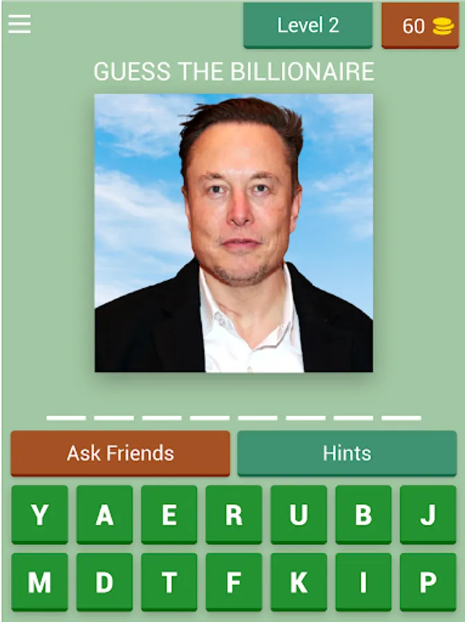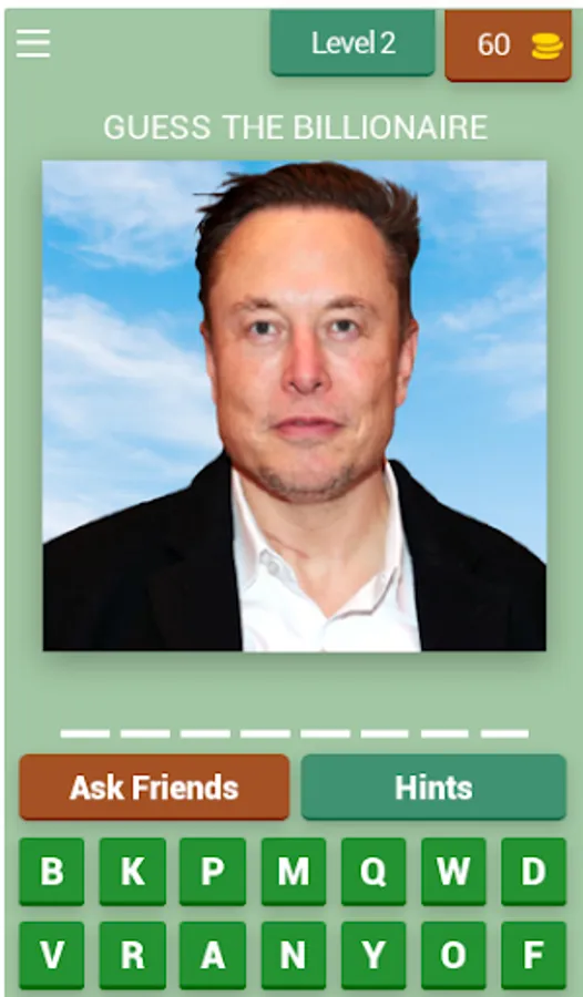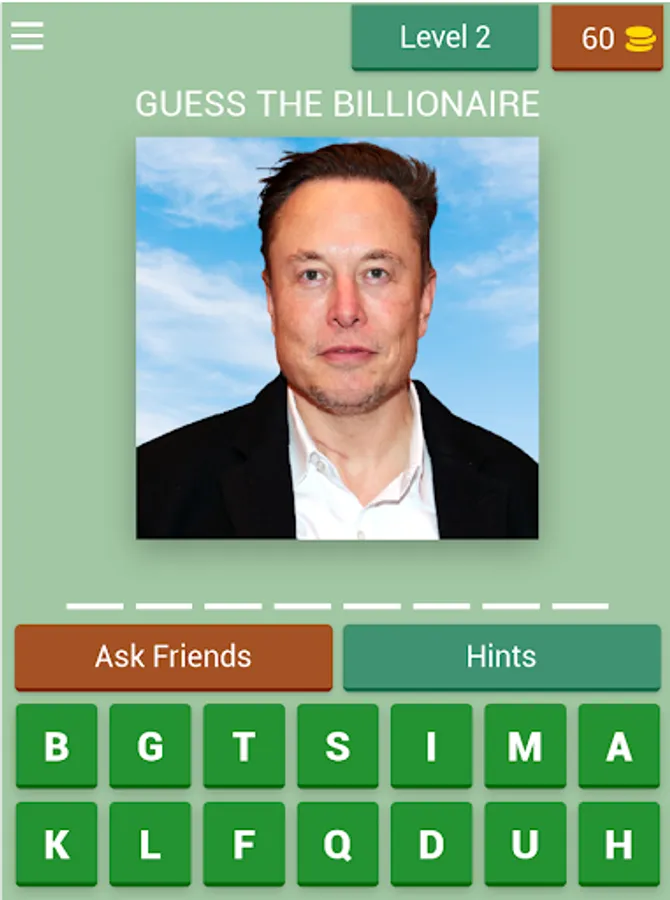 Sharpen your observation skills and expand your knowledge of the billionaire elite while having a blast. Whether you're a trivia enthusiast or simply curious about the world's most successful people, "Guess The Billionaire" is the perfect game to challenge your wits and have fun.