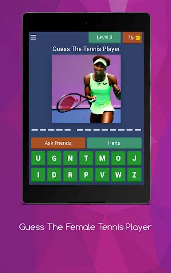 Looking for a fun way to test your knowledge of female tennis players? Look no further than "Guess The Female Tennis Player" - the ultimate app for tennis enthusiasts!