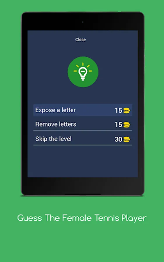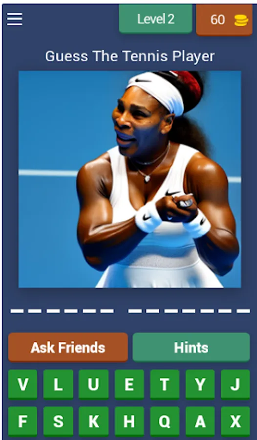 Introducing "Guess The Female Tennis Player" – the ultimate trivial game app that'll have you guessing and giggling at the same time! With over 500 levels featuring the most iconic female tennis players of all time, you'll have a blast trying to match the face to the name.