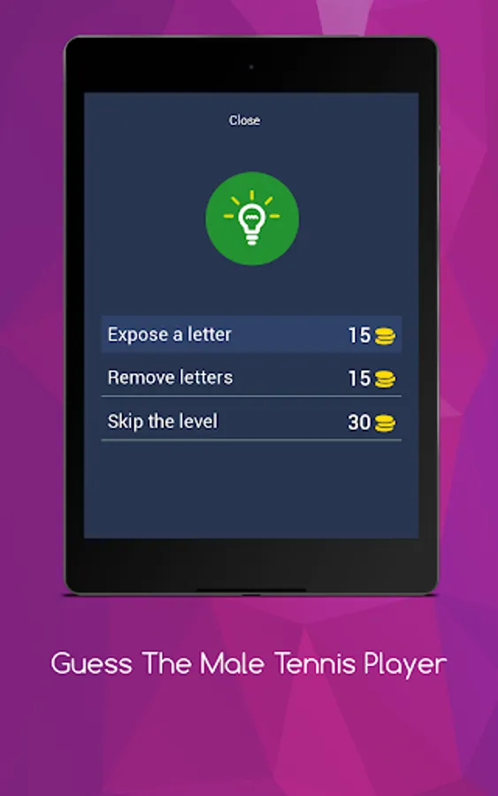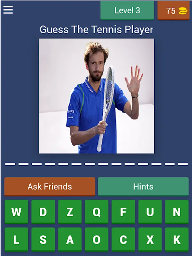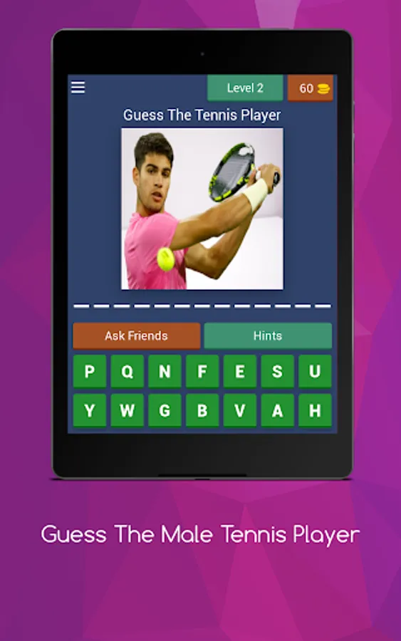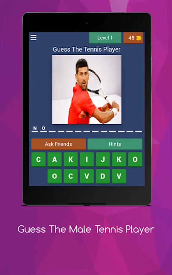 Introducing "Guess The Male Tennis Player" – the ultimate trivial game app that'll have you guessing and giggling at the same time! With over 500 levels featuring the most iconic male tennis players of all time, you'll have a blast trying to match the face to the name.