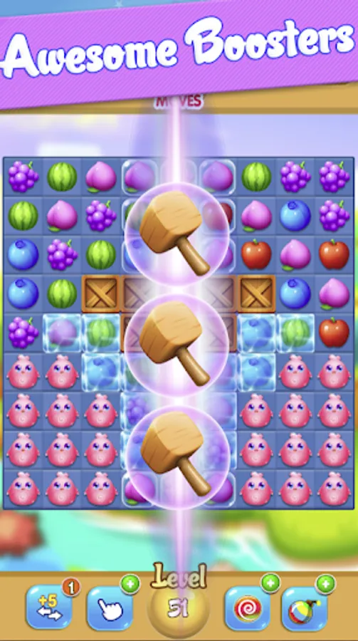 Fruitopia Frenzy matches fruit to increase your bonuses and defeat Boss Dog.