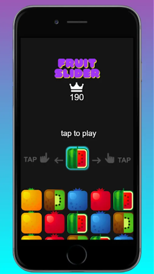 In this game you have to tap the right or left of the screen so the fruit player can move left or right so it can be aligned with the other same fruits to make score!