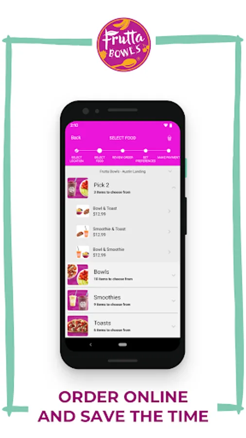 You love Frutta Bowls. Now it's easier than ever to get it. We now offer health and convenience at the click of a button. The Frutta Bowls app allows you to pay with your phone, order ahead, and earn rewards on every purchase.FEATURES