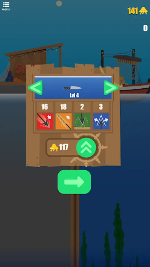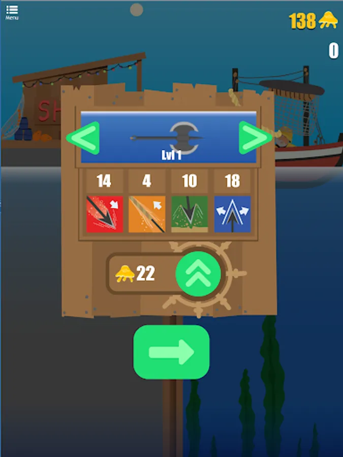 Catch fish by getting a spear that fits your personal play style: basic but effective harpoons, axes that amplify the shooting area, heavy and devastating anchors, subtle and fast knives, shurikens to feel like a ninja⦠even powerful missiles to get fishing combos! Earn enough golden jellyfish to upgrade your fishing weapons and gears and boost their attributes: throwing speed, pulling speed, shot scope, etc⦠Go deeper and catch more fish with each shoot!