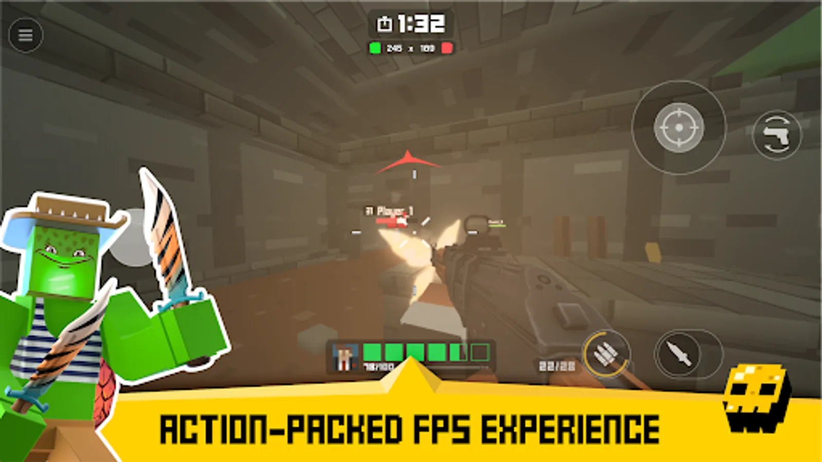Enter the Krunker universe using any kind of mobile device, and compete in a cross-platform REAL-TIME MULTIPLAYER EXPERIENCE that supports chaotic 10 player matches across a pool of scenic locations.