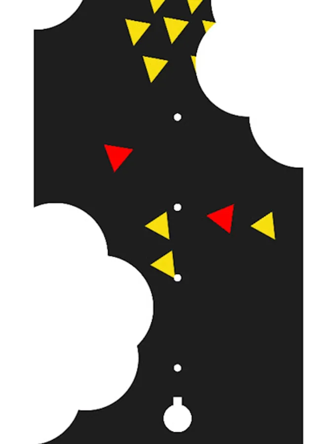 Control your character with one finger and dodge the white obstacles while shooting at the enemy triangles. Travel your way as you increase your distance.