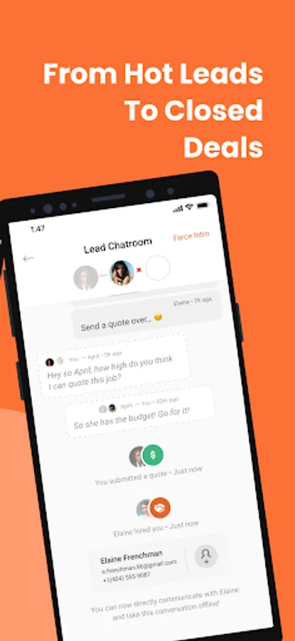 Communicate with your leads in a chatroom, along with the referring mutual friend