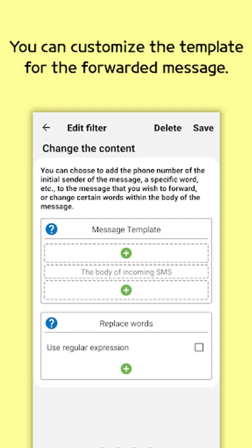 3. You can set keywords present in the phonenumber or message body as conditions, or leave it blank if you just want to forward everything.