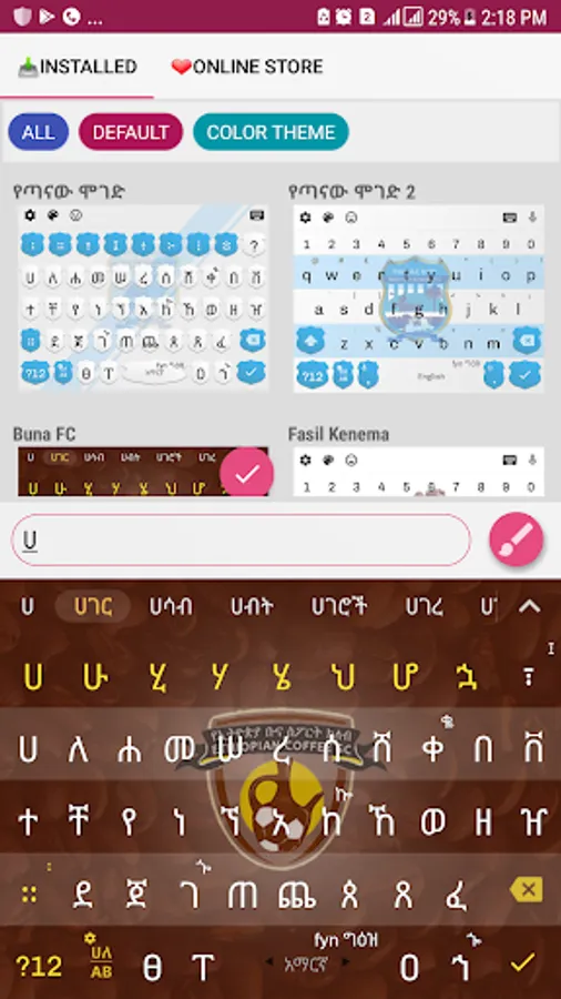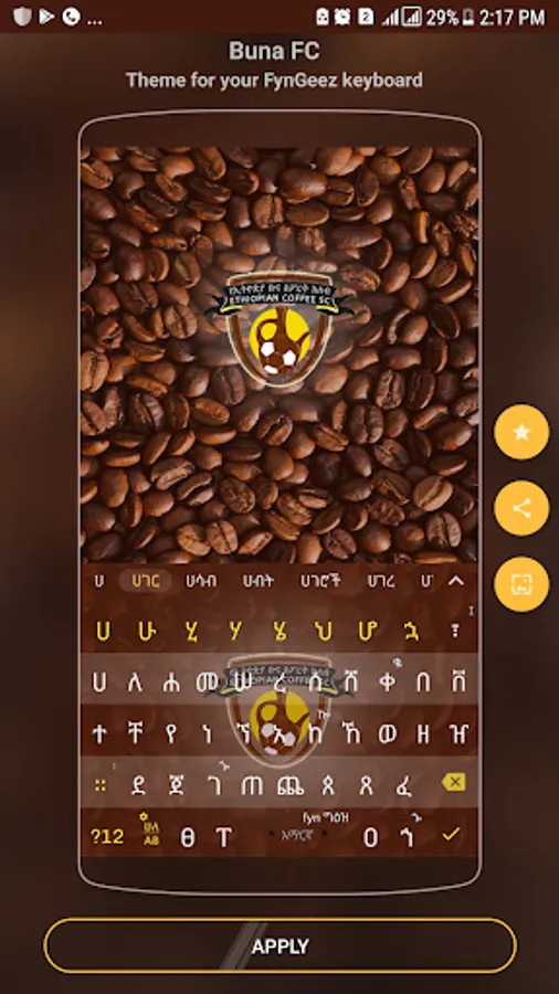 Amharic Keyboard theme for FynGeez based on Ethiopian Buna FC - ቡና የእግር ኳስ ክለብ