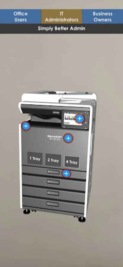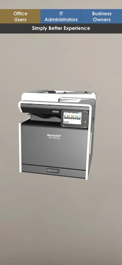 The C-Cube IT app for virtual 3D Demo of Sharp Color Multi- Functional Printer explaining features and USPs to the end customers. The App directs to different hotspots and each hotspot explain the product feature with video presentation using Augment Reality App. Sharp Multi-Functional Printer sets simply better experience for Office Users, IT Administrators and Business Owners.