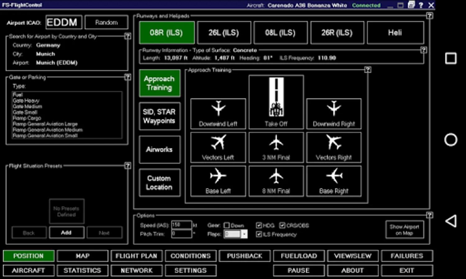 FS-FlightControl is a touch optimized instructor station for Lockheed Martin Prepar3D, Microsoft Flight Simulator and X-Plane.