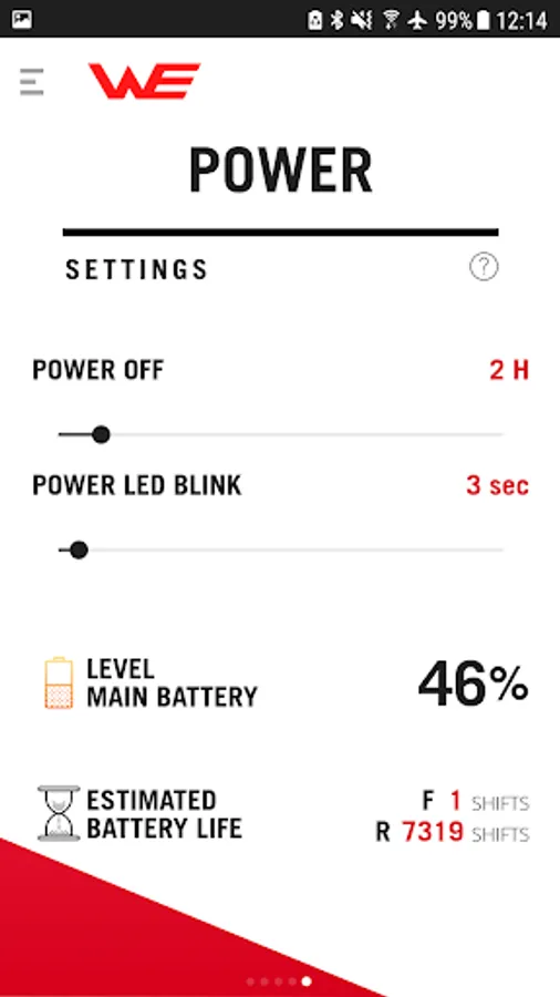 Here you can control some parameter that allow you to optimize your battery lifetime, you will also be able to check the battery level and estimated shifts remaining