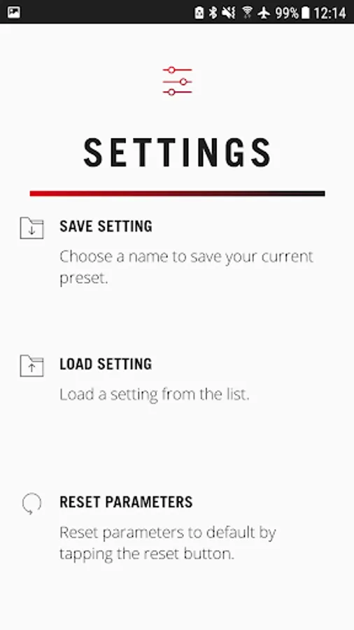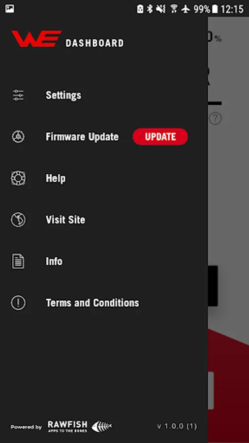 This menu allow you to access the firmware update page, check the instruction of both drivetrain use and installaion and application, seve you seeting profile.