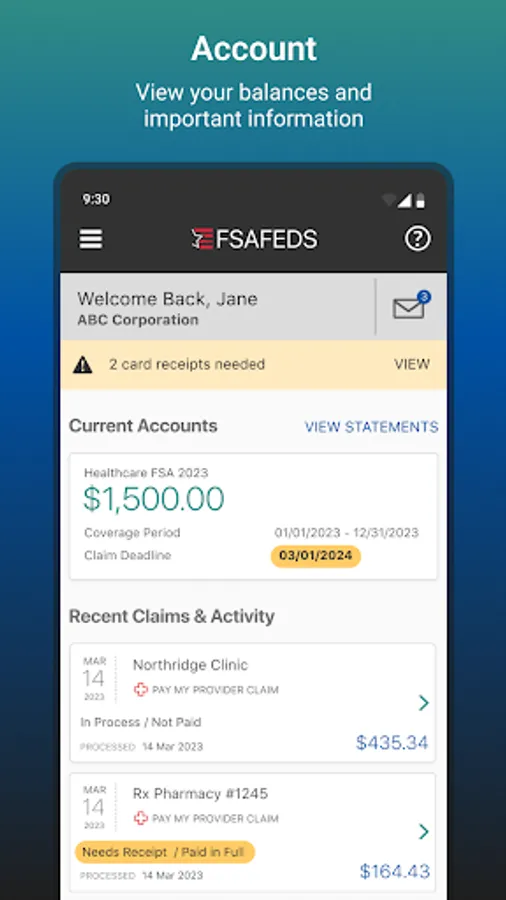 This app is for you if you are enrolled in an FSAFEDS Health Care FSA, Limited Expense FSA and/or Dependent Care FSA.