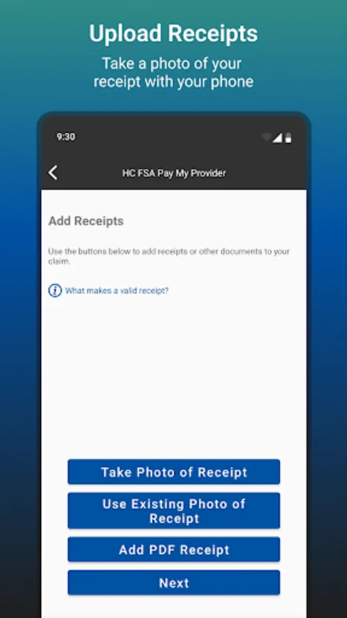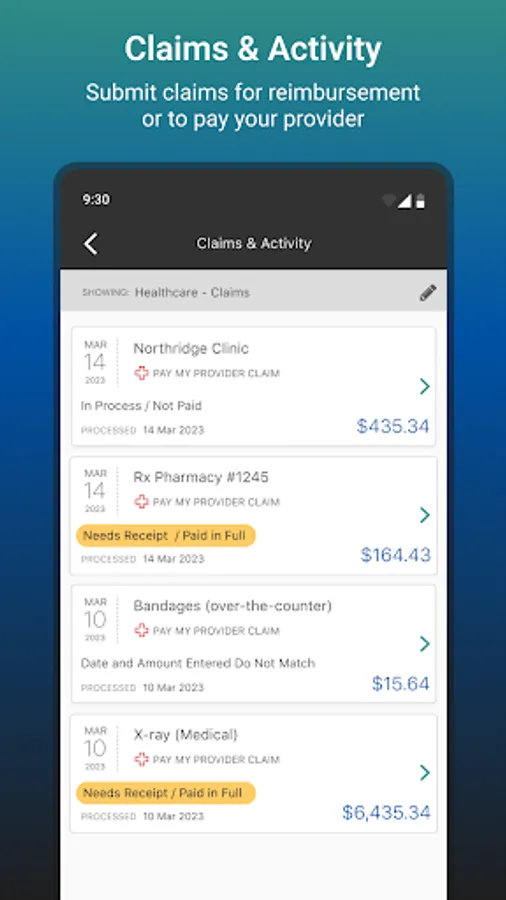 • Dependent care claims – capture your provider’s signature in the app or submit a photo of your receipt