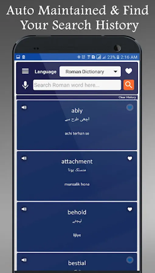 Roman Dictionary – Search word meaning in native English like (Kasy ho, Pyar, Hum, tum, boht... etc.).